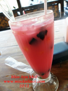 Es Buah yang ada di Ayam-Ayam Resto ternyata tidak disajikan dalam porsi mangkok gannn.. "Kok bisa?" #Positive thingking Miss Ayu sih mungkin semua mangkok lagi pada dicuci kali yah jadinya disajikan dalam porsi gelas, wkwkw.. Dari segi rasa dan teksturnya lebih mirip sama Es Campur lhooo xixi.. Soalnya pake cincau hitam, kolang-kaling, dan sirup segala haha... (berbeda dari Es Buah pada umumnya). Malah untuk aneka buah-buahannya terbilang cukup sedikit karna hanya ada buah semangka dan melon sajah ckckckc... Tapi, lumayanlah yaaa... seger jogha rasanya hoho.. ^o^