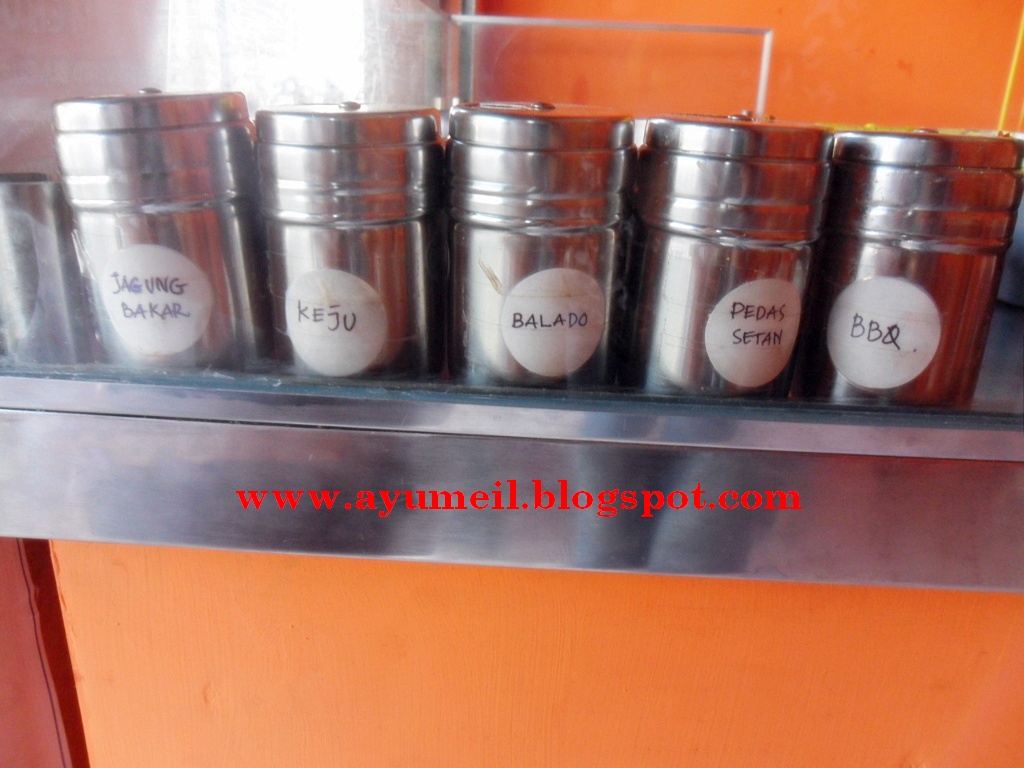 Menu yang ada di Mister Potato ini cuma ada 2 pilihan yaitu Twisterpotato Bumbu atau Spesial Twistpotato. Bahan, pilihan rasa, serta bentuknya sama kok, hanya yang membedakan kalo Twisterpotato Bumbu itu gak pake serutan keju tapi kalo Spesial Twistpotato itu pake serutan keju. Akhirnya kita berdua memilih 2 pilihan yang berbeda *biar bisa saling icip getooo wwkwk.... Variasi bumbunya pun sangad beragam diantaranya ada rasa Balado, Keju, Jagung Bakar, BBQ, dan Pedas Setan. Kita jogha bisa minta mix max lowh bumbunya biar nano-nano gitu rasanya hehe.. Nah, berhubung ketika Miss Ayu kesini masih dalam rangka harga promosi jadinya harga Twistpotato Bumbu cuma 5.000 rupiah dan Spesial Twistpotato cuma 6.000 rupiah sajah. Walah..walah.. sungguh beruntung sekaleeee :D