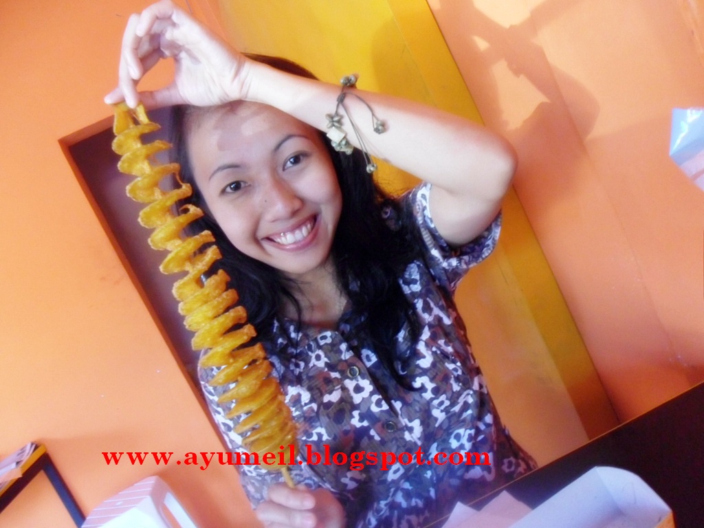 Panjanggg...lumayan crispy..berbumbu...MAKREMEZZZ!! wkwkwk... Itulah gambaran ketika Miss Ayu menikmati Twistpotato. Tergantung sesuai selera ketika memilih bumbu membuat Miss Ayu kepedesan gara-gara memilih yang rasa Pedas Setan wkwkw.. *beuhhh sangar benerrr!! Cocok banget nih kalo buat ngemil di malam hari (biar nambah gendut getooo maksudnya). Pesan 1 Twistpotato ajah ternyata porsinya banyak banget, lama ngabisinnya nih hahaha... Tapi, sayang bangetx! Kalo makan ditempat sang penjual tidak menjajakan pula minumannya, sehingga Miss Ayu kepedesan dan jogha kekurangan cairan ketika mengkonsumsinya hehe.. *saran ajah nih sediain jogha dounk aneka minumannya biar tambah afdol kalo mau makan di tempat. Tapi, kalo mau dibawa pulang jogha gak masalah kok, yang penting judulnya NGEMILLLLL hahaha... :D