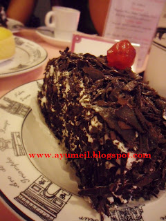 Foret Noire kalo dilihat-lihat lebih mirip sama Black Forest walau ternyata ada perbedaanya yaitu kalo Black Forest itu sendiri cake yang dibalut dengan whip cream dan cokelat sedangkan Foret Noire isinya full whip cream dan cokelat. Yummyyy yipyyyy ashololeeee...!! Ukurannya cukup besar jogha lowh jadi mantap jaya banget dewh untuk menikmatinya *wahhh ini sih favoritnya Miss Ayu banget suka yang besar-besar hoho ^o^