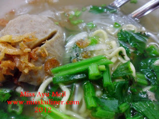 Bakso yang Miss Ayu pesen disini yaitu Bakso Granatz Pedaz, berisi 1 bakso halus besar super pedas plus sayuran dan jogha bihun. Soal rasa, bakso ini memang pedas cuy alias AJIBBB BENERRR!! Tapi kuahnya gak begitu terasa nih *malah terkesan hambar. Selain itu kalo di papan gambar itu ada irisan cabainya, tapi ketika kenyataannya gak ada potongan cabai sama sekali, ckck.. Jadi kurang greget ajah gitu hehe.. :D