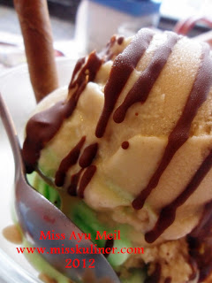 Avocado Fudge merupakan perpaduan antara ice cream rasa Alpukat dan Vanilla yang diselipkan beberapa potong buah alpukat serta di atasnya dikasih hiasan coklat beku plus astor sehingga menambah cantik ice cream yang satu ini. Aroma alpukat, mint, serta legitnya ice cream membuat kepengen lagi dan lagi makan ice cream yang satu ini hahahaha... Bener-bener recommended!! :D