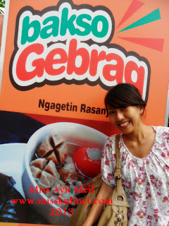 Alhamdulillah ya Rabb.. Hari ini Miss Ayu Meil sedikit bisa bernafas lega pemirsa semuanya... Urusan izin lab udah kelar cuy, haha... Jadi saatnya untuk ngebut mengejar ketinggalan, biar skripsi cepet kelar. Kadang kasihan melihat ortu Miss Ayu, pengen anaknya cepet lulus. Tapi apa daya tangan tak sampai, banyak bangetx dah rintangan dan hambatannya *ceileee... Mulai dari ini dari itu yang kalo Miss Ayu sebutkan penyebabnya sangat gak etis bangetx, ya kan??? Sekarang sih yang terpenting terus berdoa dan berusaha dah biar cepet kelar skripsinya, aamiin.. Nah.. berhubung lagi lumayan seneng dan kebetulan hari ini Miss Ayu ketemu si Nia *sebut sajah namanya demikian, akhirnya kita berdua makan siang bareng deh. Masih inget kan perilaku Miss Ayu yang rada eror?? Kalo waktunya makan udah telat, makan nasipun gak bakalan masuk ke perut hehe.. Alhasil deh Miss Ayu maksi bakso yang sebelumnya Miss Ayu belom pernah coba, yaitu Bakso Gebrag. Bujubunengggg... apanya yang digebrag yak??? Daripada penasaran langsung ajah deh capcus ke #TKP :D