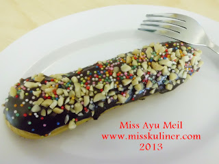 Aku cuka eclair....!! Soalnya cocok banget untuk menjadi pendamping pada saat kita menikmati kopi atau teh. Walaupun banyak yang bilang kalo eclair itu gak jauh beda sama kue sus, tapi Miss Ayu lebih suka eclair daripada kue sus. Gak bikin enek dan porsinya jogha pas untuk ngemil. Apalagi di Parsley Gelato aneka rasa Eclairnya lumayan banyak cyinttt.. Jadi, mesti dicobain semuanya tuh biar afdol hehe. :D