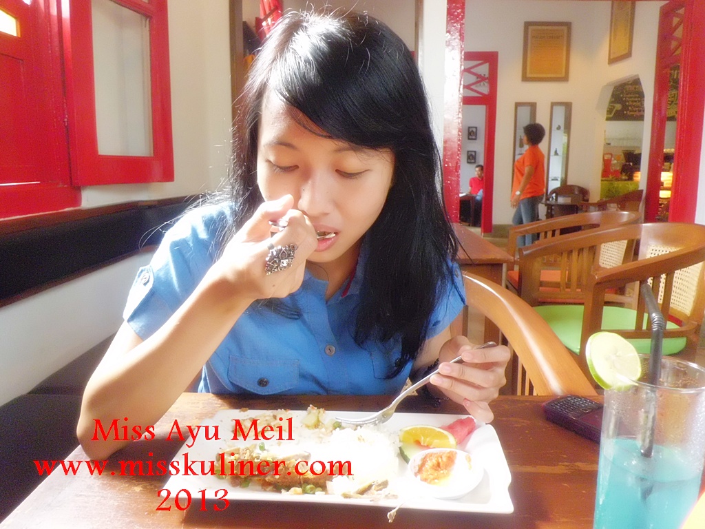 Nah... kebetulan siang ini suasana #TKP lagi penuh-penuhnya nih jadi lumayan rada bingung jogha memilih tempat yang asyek buat makan siang sekalian buat bernarsis-narsis ria, hehehe.. *tetep yeeee. Setelah hampir 2x pindah tempat duduk akhirnya kita berdua mendapatkan spot yang cucok buat makan plus foto narsis gitu. Pelayanan yang ramah tentu jogha membuat Miss Ayu bakalan merekomendasikan tempat ini deh buat sobat-sobat semuanyaaaaaa... :D