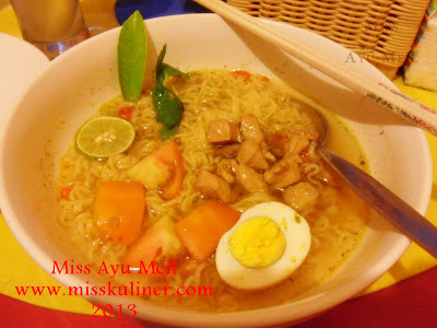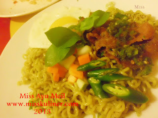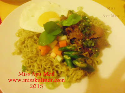 Sesampainya di #TKP memang belum terlalu rame sih, maklum mendekati waktu Isya hehe.. Nah, berbahan baku mie bungkus gitu yang disajikan semirip mungkin bikin siapa sajah yang datang ke #TKP pasti tergiur untuk mencobanya satu persatu *itu laper atau doyan yaaa, xixixi.. Tersedia baik mie rebus ataupun mie goreng dengan berbagai macam aneka rasa, seperti Mie Ayam Bawang, Mie Kari Ayam, Soto Mie, Mie Cakalang, Mie kocok bandung, Mie Rendang, Mie Vegan, dan masih banyak menu lainnya lagi deh...